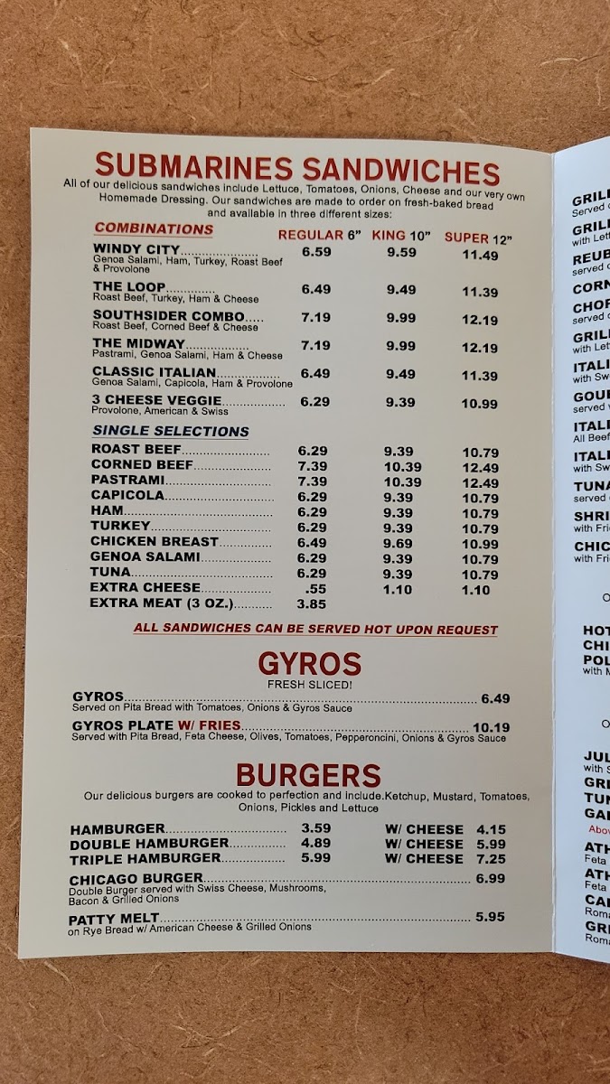 Windy City Subs Menu